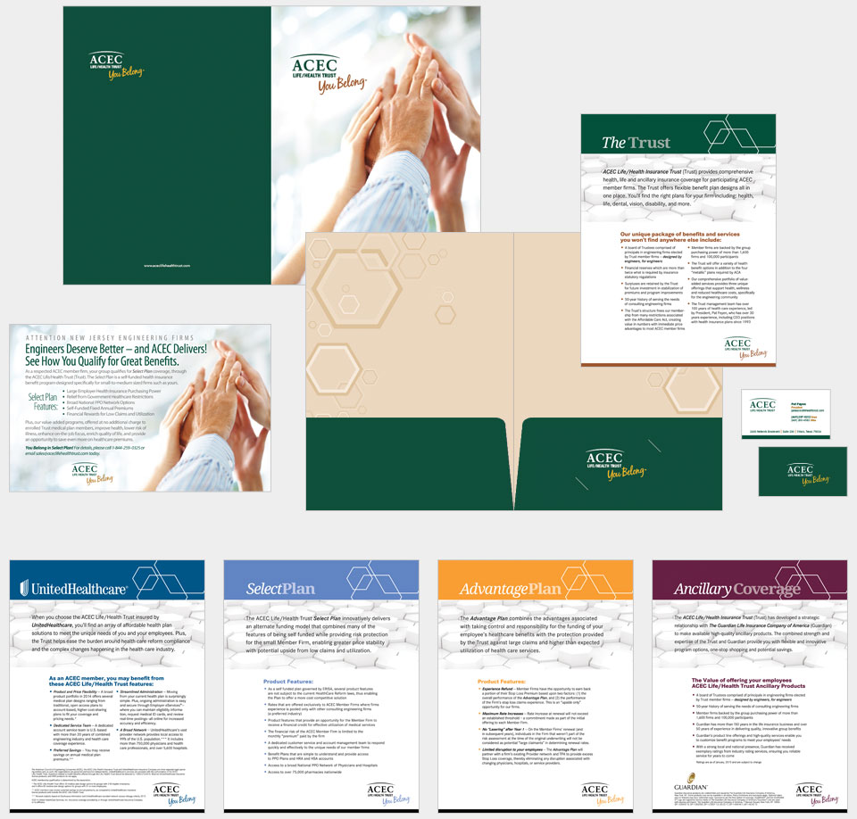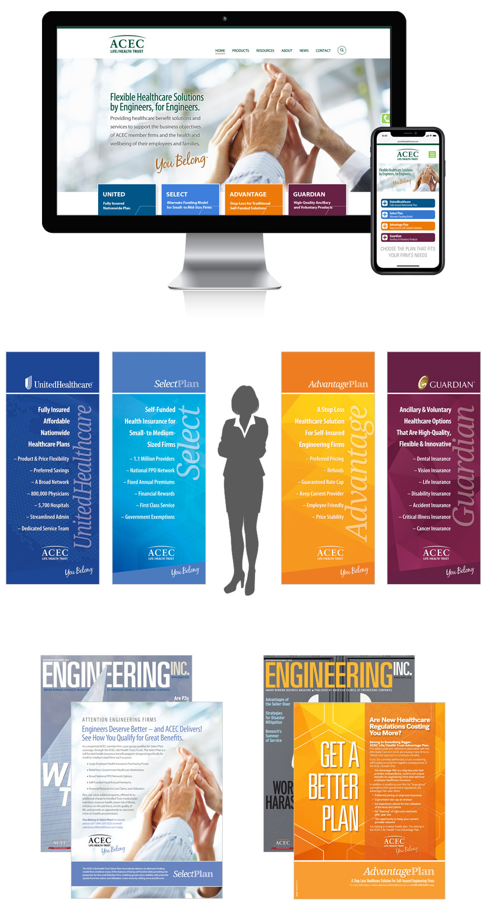 ACEC Life/Health Trust is a healthcare benefit solutions and services provider that was established to support the American Council of Engineering Companies (ACEC) and its Member Organizations nationwide. The Trust initially approached 2 Right Brains to address their severely fragmented web presence. The engagement turned into a complex re-positioning and sub-branding campaign — creating more cohesion among their offerings to help build brand association and recognition for their portfolio of insurance products and service offerings.